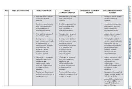 Έκτακτα μέτρα προστασίας της δημόσιας υγείας ανά πεδίο δραστηριότητας και επίπεδο επιδημιολογικής επιβάρυνσης
