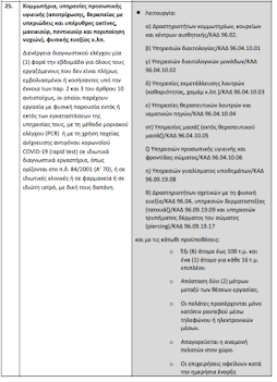 Έκτακτα μέτρα προστασίας της δημόσιας υγείας ανά πεδίο δραστηριότητας