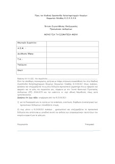 Στη συνέχεια το Δ.Σ. των σωματείων-μελών της Κ.Ο.Κ.Κ.Κ.Ε αφού συγκεντρώσει όλα τα απαιτούμενα δικαιολογητικά των μελών τους ,θα τα αποστείλει συγκεντρωτικά μαζί με το έντυπο συγκατάθεσης επεξεργασίας προσωπικών δεδομένων, στον Ταμία της Ομοσπονδίας μας, κύριο Ιώαννη Διονυσόπουλο , στη διεύθυνση Μανωλοπούλου 54, Τ.Κ. 27 131, Πύργος Ηλείας, τηλέφωνο επικοινωνίας 6973411504.